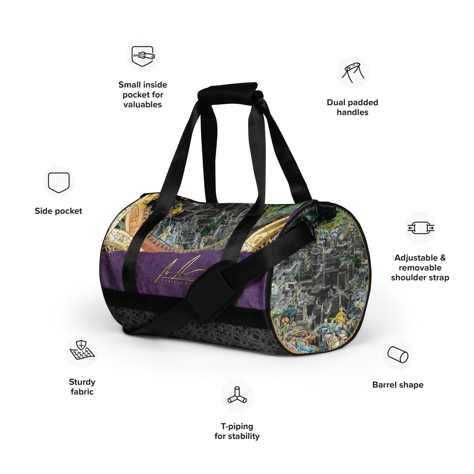 Bereit für Fitness? Verleihe deinem Training mit dieser vollflächig bedruckten Sporttasche neuen Schwung. Diese Tasche aus 100 % Polyester und robustem, wasserabweisendem Stoff vereint Spaß und Funktion. Und sie hat zusätzliche Taschen!