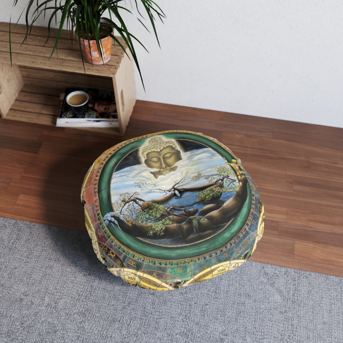 Verleihen Sie jedem Ruhebereich rund um das Haus eine individuelle Note mit einem runden, getufteten Bodenkissen mit einer weißen Naht in der Mitte. Dieses Bodenkissen wird mit seiner eigenen Füllung geliefert und ist ebenso bequem wie stilvoll.